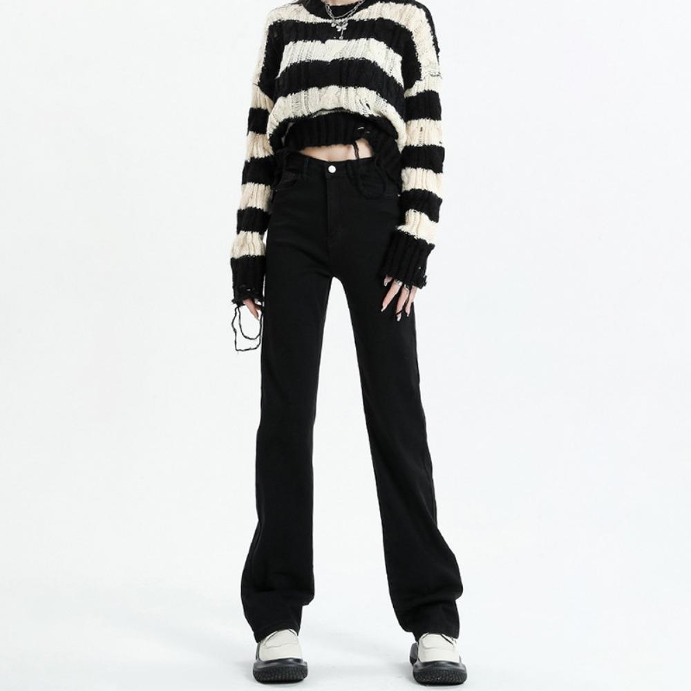 Персонализированные прямые джинсы для通勤 женские весенне-осенние новые корейская версия маленькие свободные и тонкие брюки для подметания пола тренд