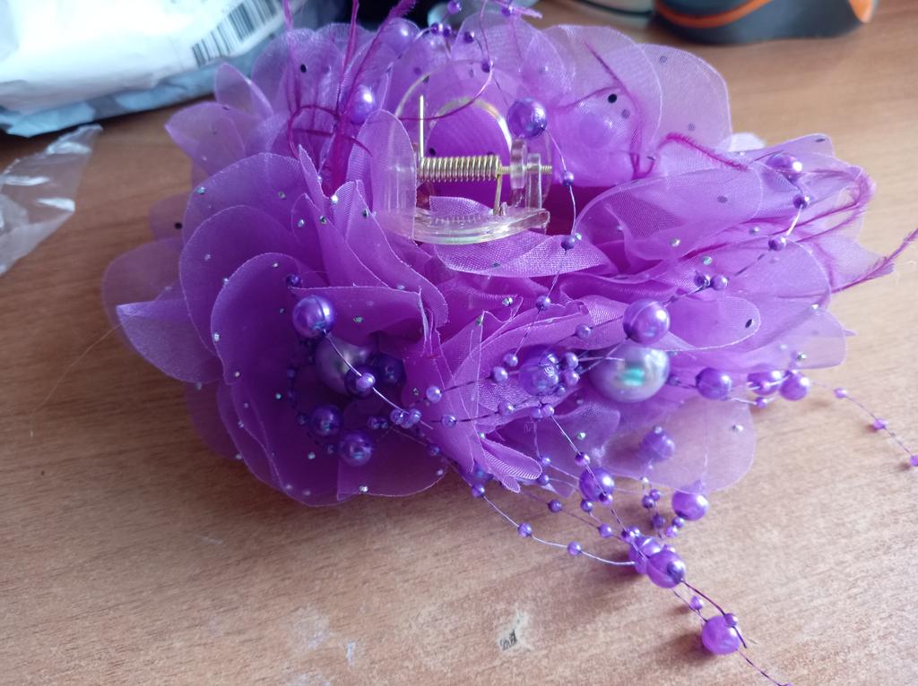 ✅Сама заколка представляет из себя пластиковый чехол с жемчужинами, который одет на заколку металическую.