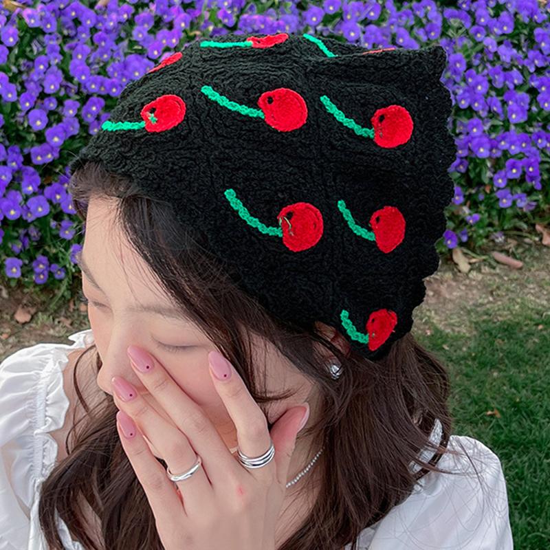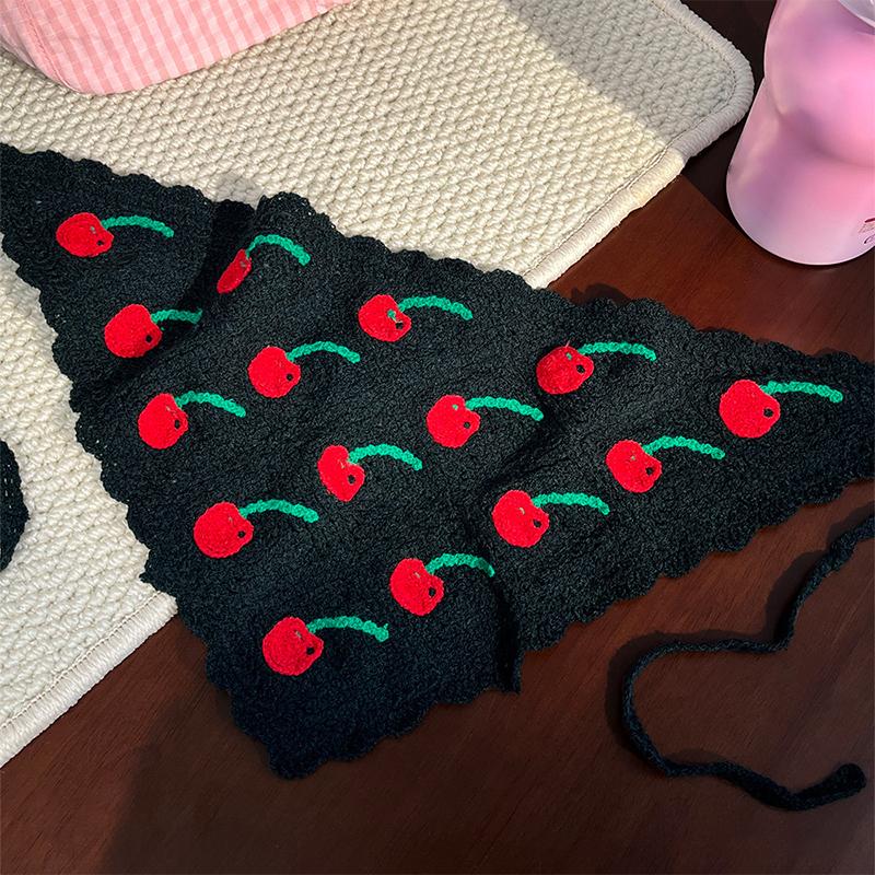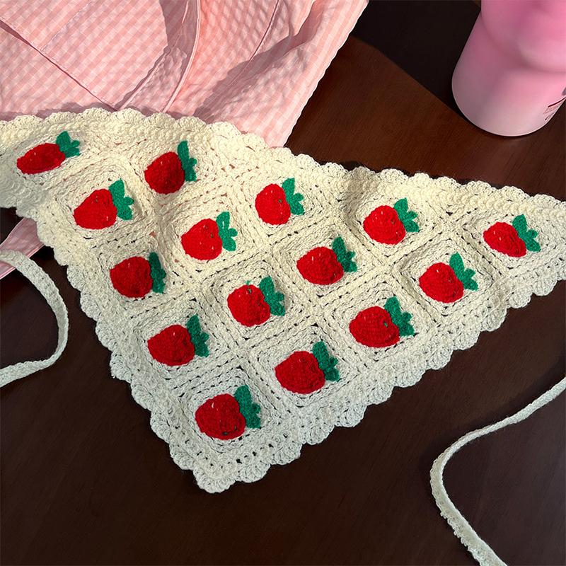 Сладкая Милая Клубника Вишня Ручная Вязка Крючком Ажурная Треугольная Повязка на Голову Полотенце Женская Весна Лето Путешествие Фото Волосы Шарф