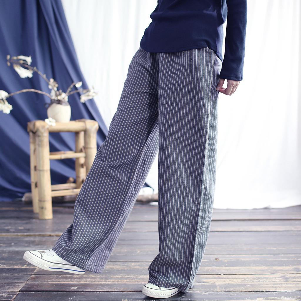 Johnature Винтажные полосатые прямые брюки для женщин, брюки с эластичной талией, осенние свободные повседневные мягкие брюки