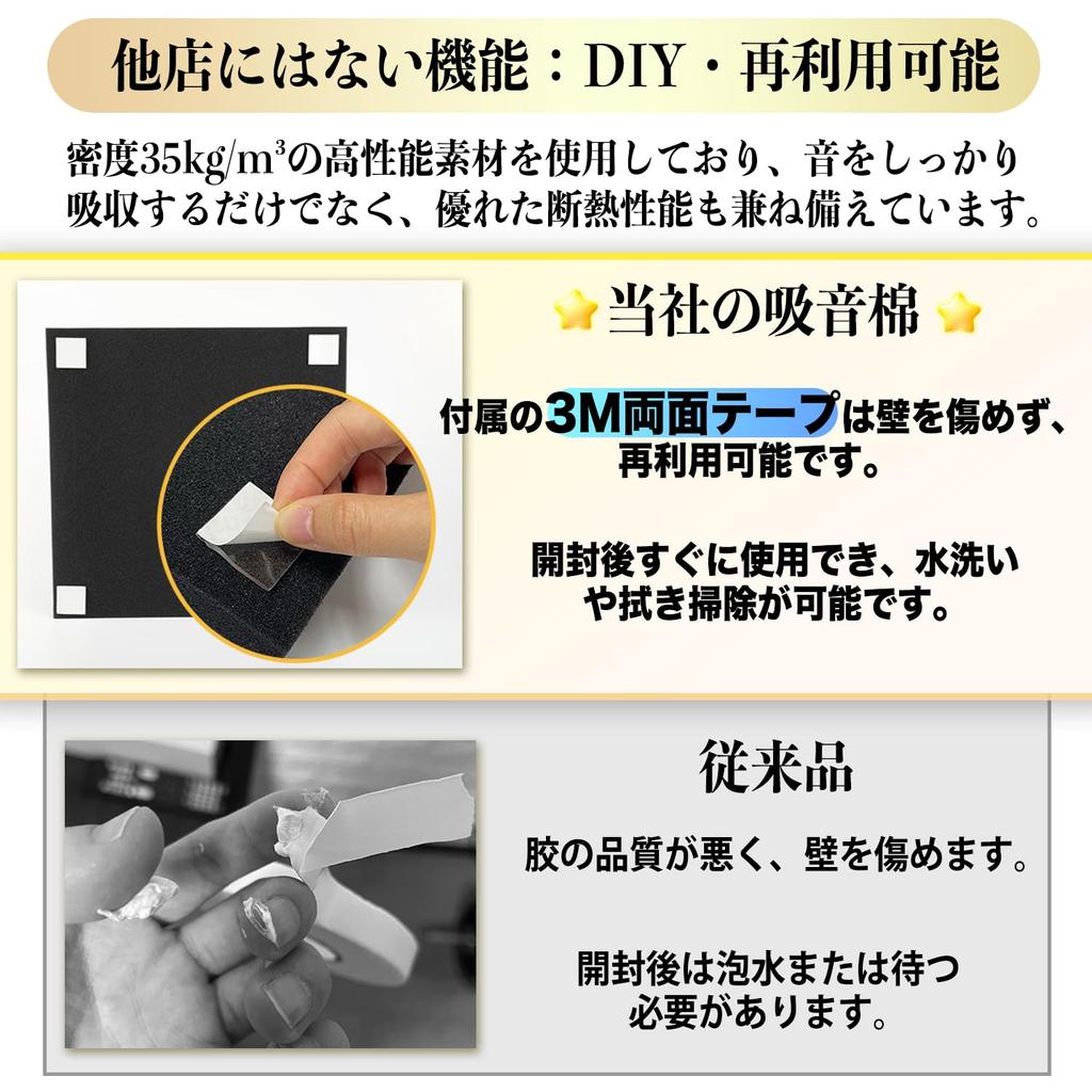 Упаковка из 12 звукоизоляционных панелей (Толщина 5 см, Звукопоглощающий, Изолирующий, с Двусторонним скотчем 3M) - Не требующий крепления к стене, Сверхтолстый, Звукопоглощающий,