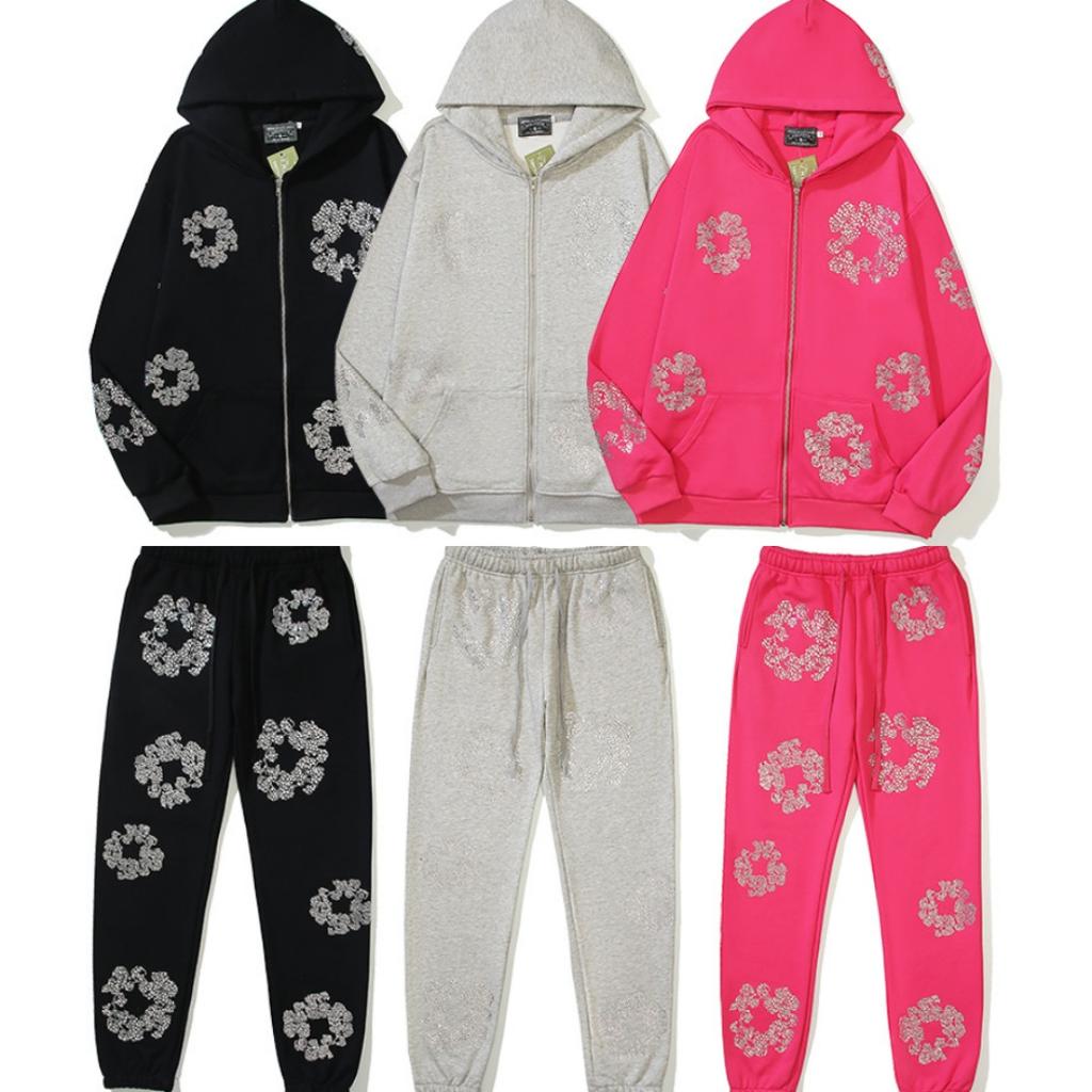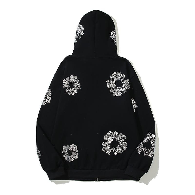 2025 Уличный Хип-Хоп Винтаж Капок Кристалл Горячий Бриллиант Молния на Груди Толстовка с Капюшоном Куртка Прилив