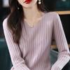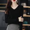 Трикотаж Весна и осень, тонкий пуловер с v-образным вырезом, подшерсток с длинными рукавами, женский свитер, простой и элегантный универсальный топ