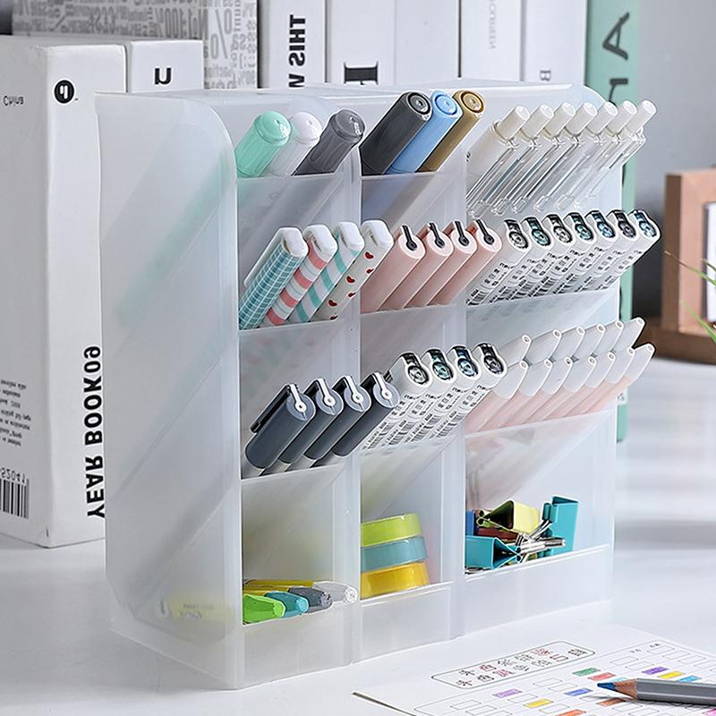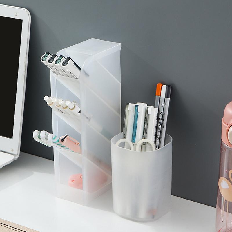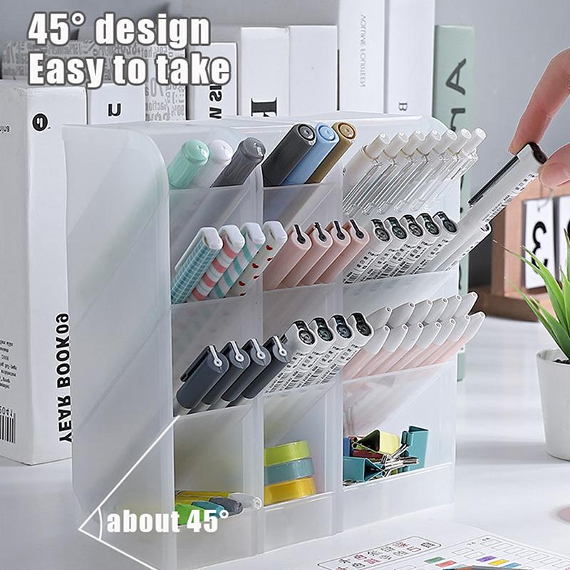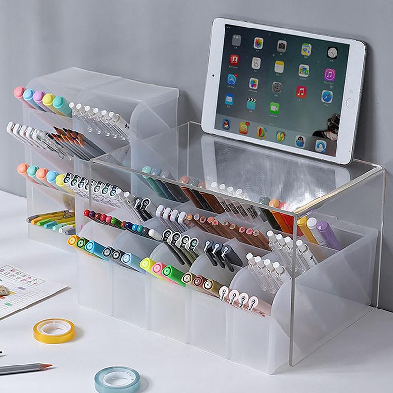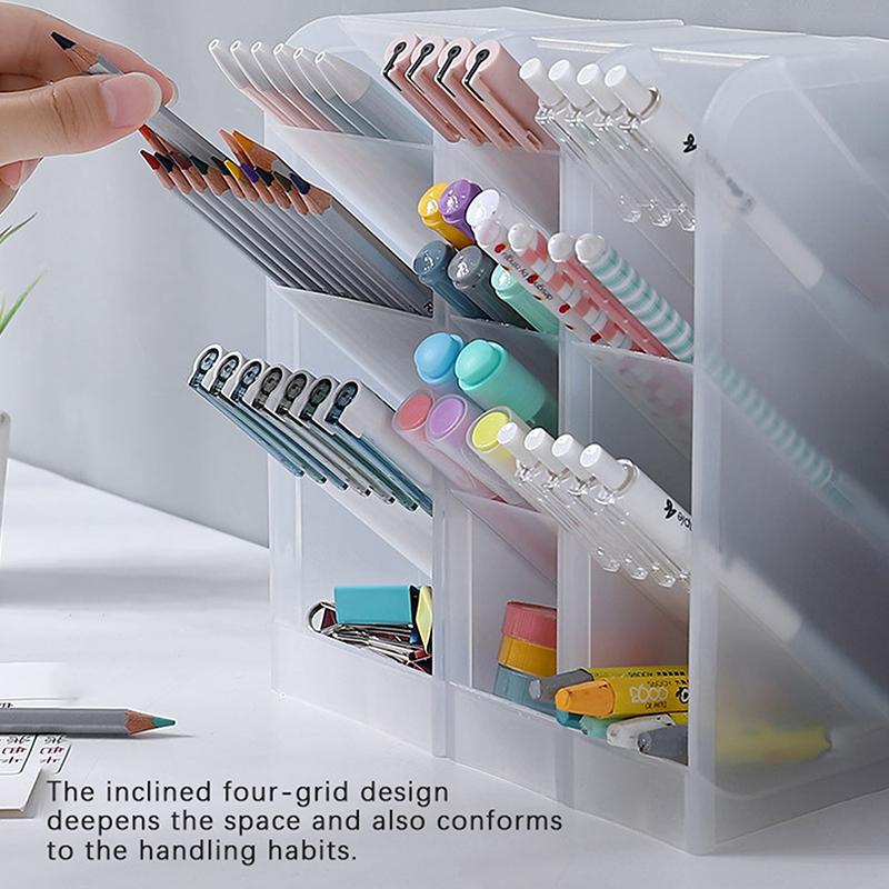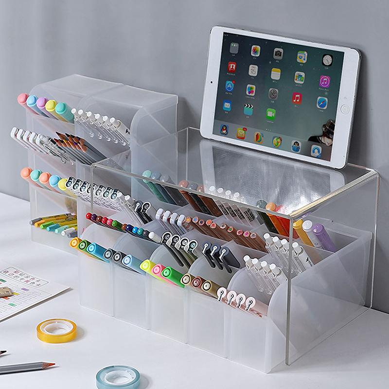 Настольный прозрачный матовый держатель для ручек, наклонный ящик для хранения кисточек для макияжа и помады, многофункциональный ящик для хранения канцелярских принадлежностей