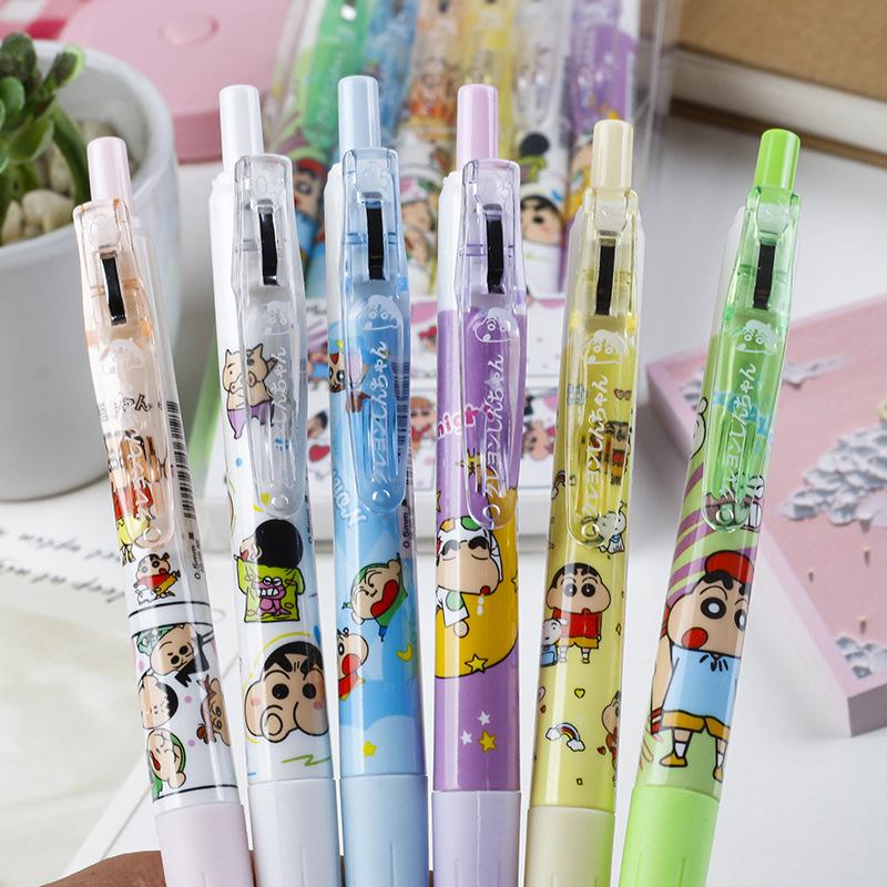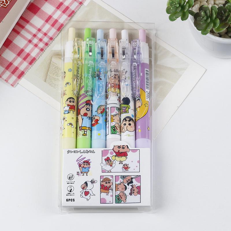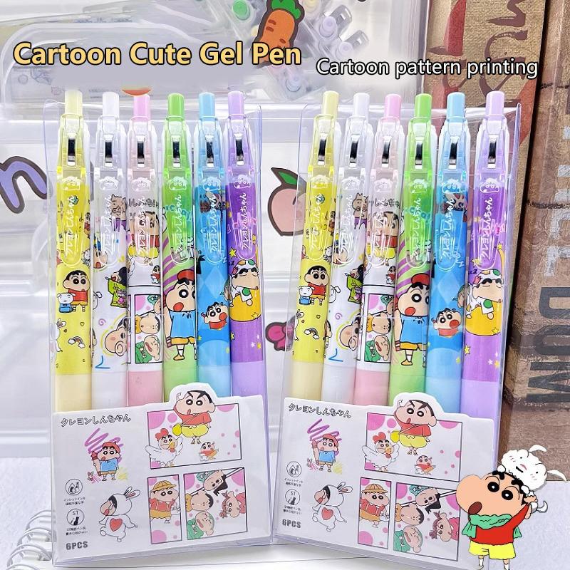 6 шт. Мультяшная ручка-автомат Crayon Shin-Chan, Каваии, детская ручка для письма, быстросохнущая гелевая ручка, студенческие канцелярские товары, подарок