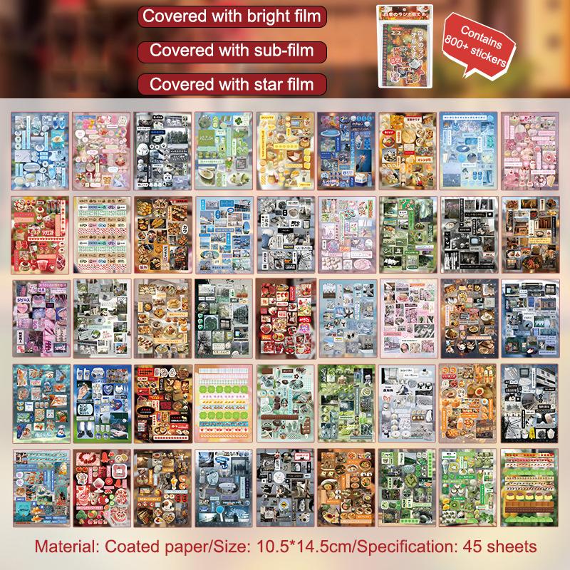 45 листов Декоративные наклейки в стиле японских комиксов Винтажные наклейки Kawaii Креативный материал для самостоятельного изготовления Декоративные наклейки