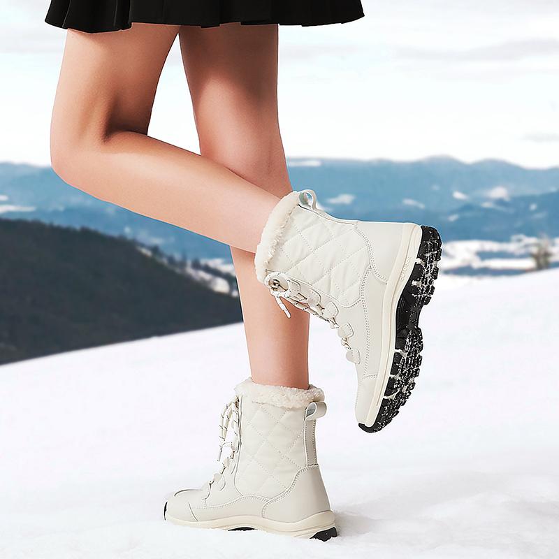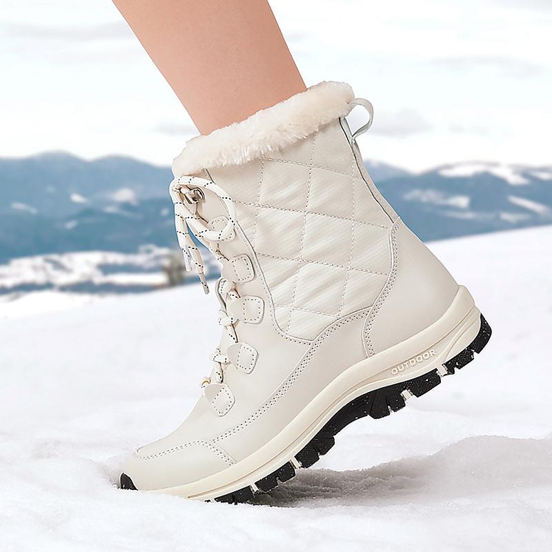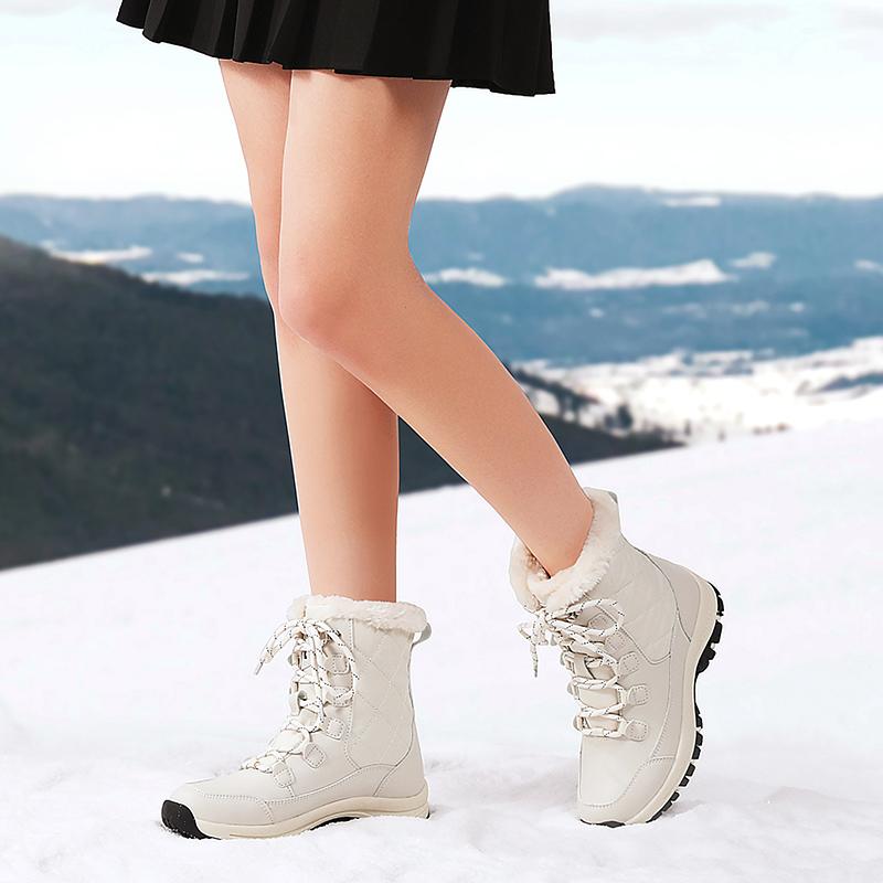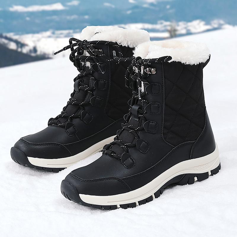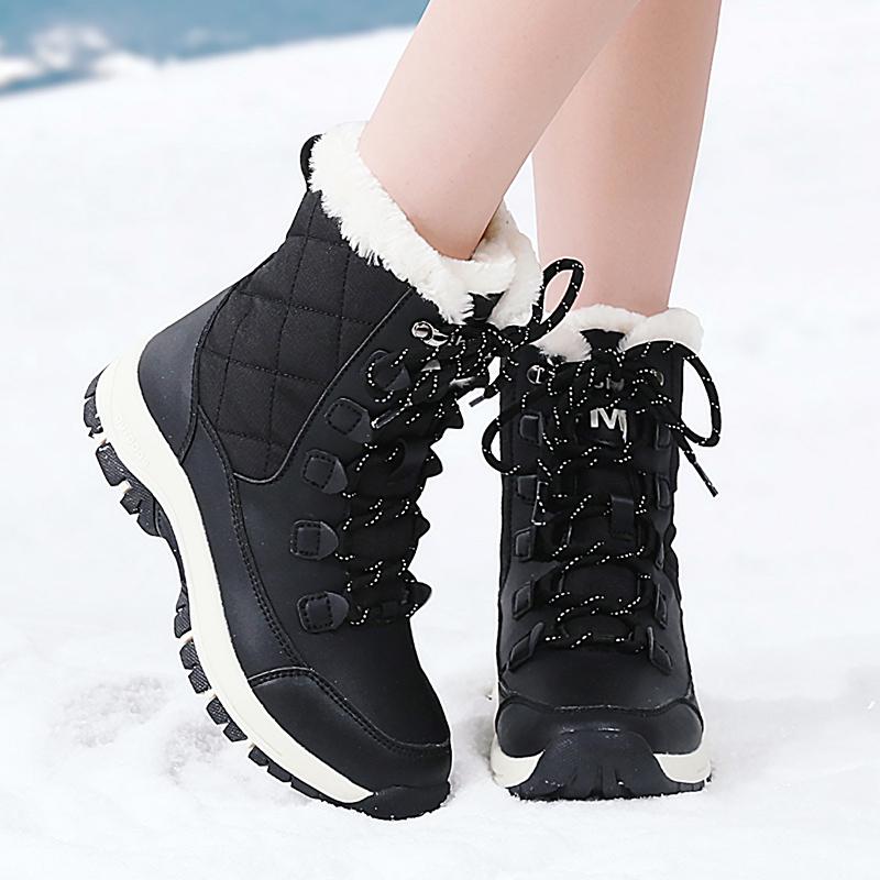 TUINANLE Зимние снежные ботинки Женские до середины икры Нескользящие и теплые хлопковые ботинки на толстой подошве Утепленные хлопковые ботинки