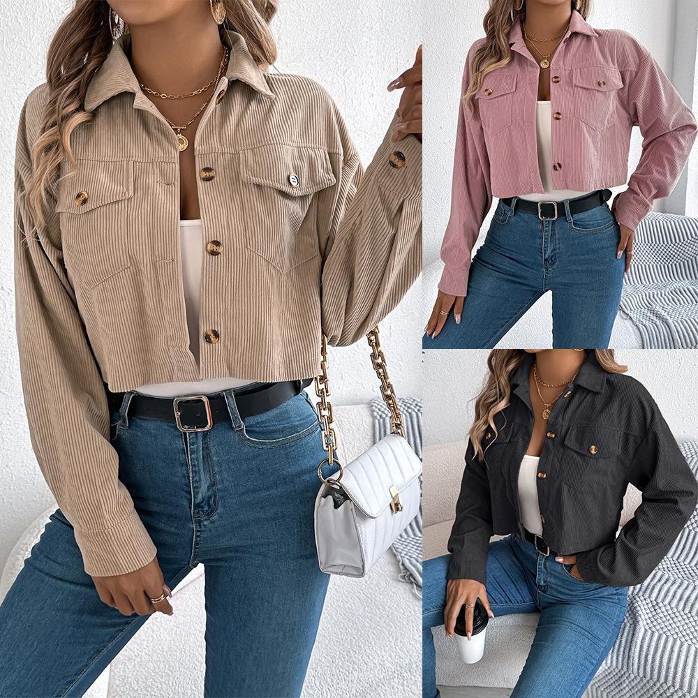 Осеннее женское вельветовое пальто однотонное с отложным воротником на одной пуговице с карманом женская куртка повседневная укороченная куртка для леди
