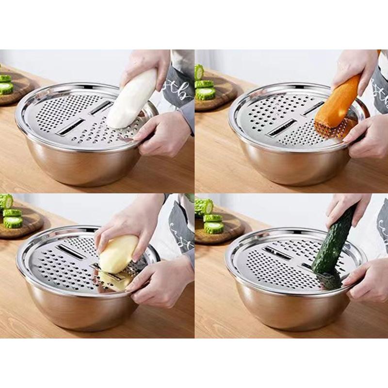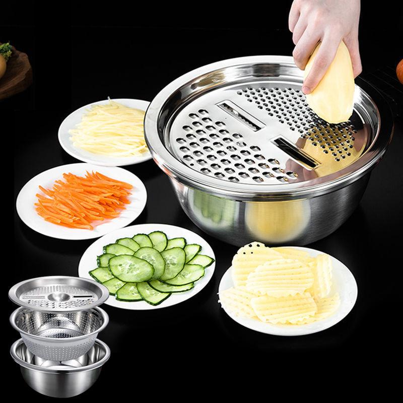 3 шт. Овощерезка из нержавеющей стали, терка, инструмент, картофелерезка, мандолина, кухонный комбайн с корзиной для слива, защита для рук от порезов, кухонный гаджет