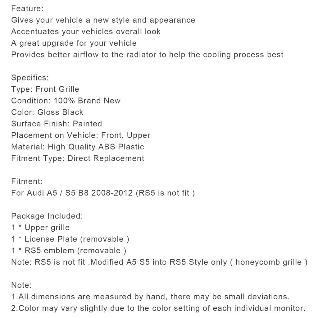 Решетка радиатора в стиле RS5 с сотовой спортивной сеткой подходит для A5 S5 B8 2008-2012