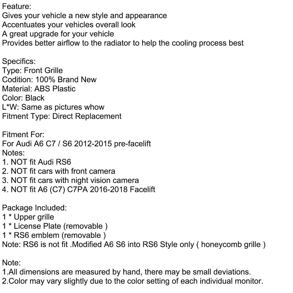 Решетка переднего бампера в стиле RS6, сотовая, подходит для A6 C7 S6 2012-2015