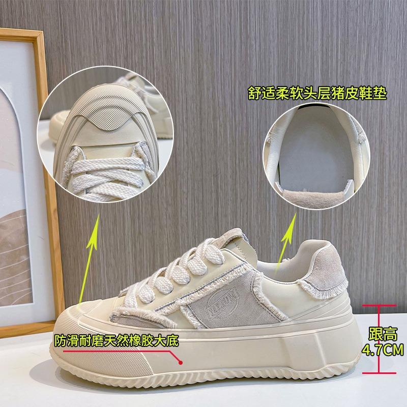 Кожаные маленькие белые туфли женские весенние новые ретро повседневные кеды на платформе увеличивающие рост женская мода контрастный цвет женские туфли