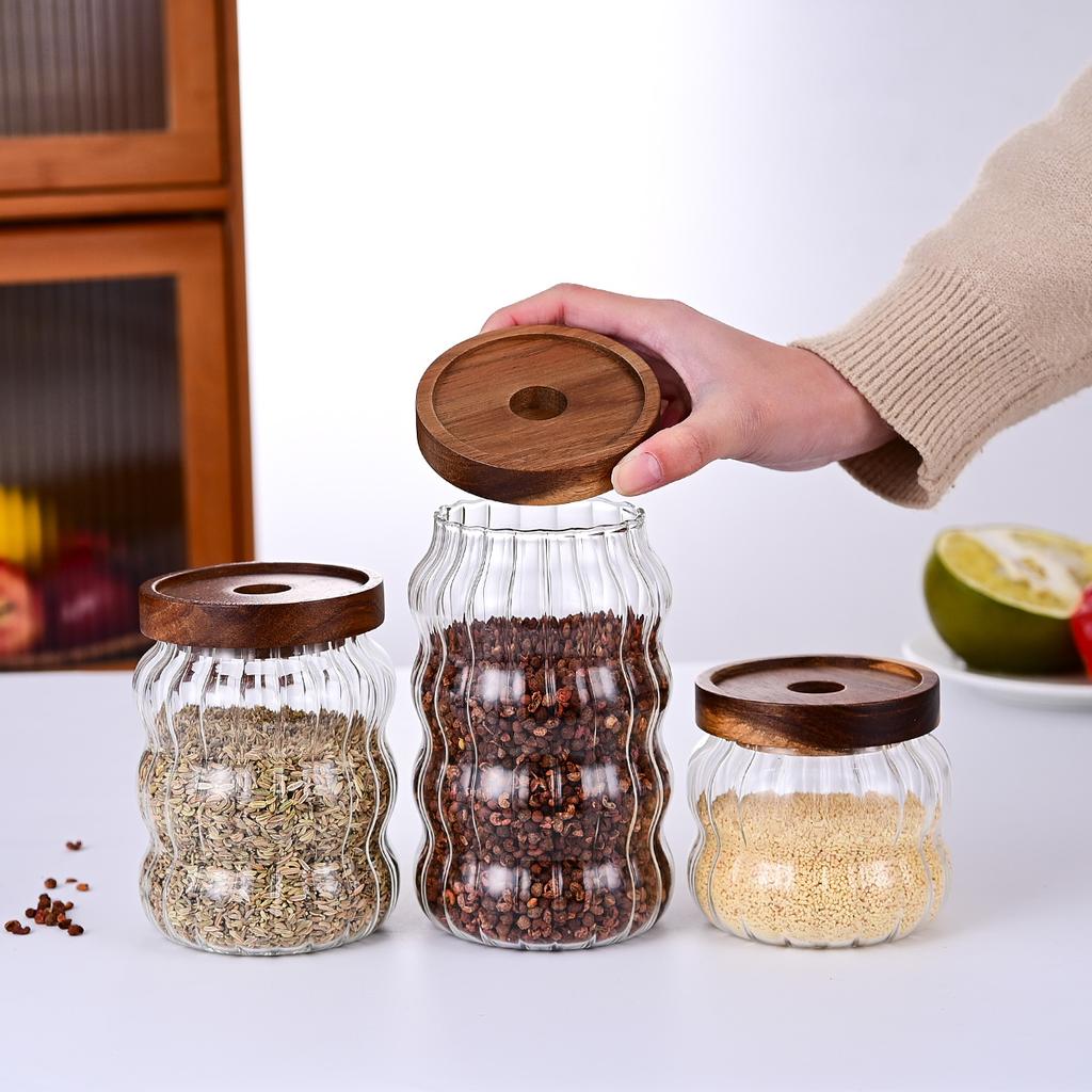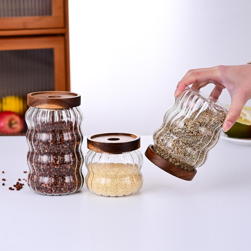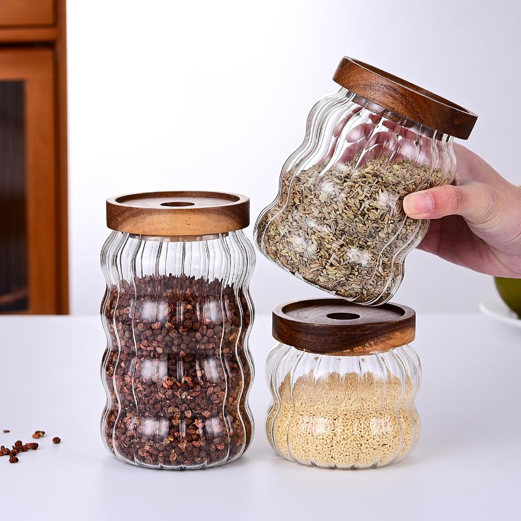 Деревянная крышка Органайзер вкусов Стеклянная герметичная банка Кухонные бутылки для хранения Банка Герметичный контейнер для еды Имбирь Хлопья Тайник Банки