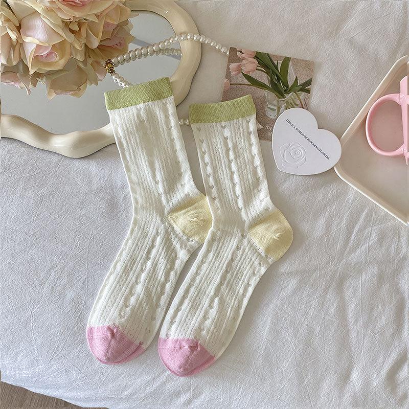 Женские летние тонкие цветные носки-трубы в горошек, полоску, сетчатые, полые, дышащие, бесшовные