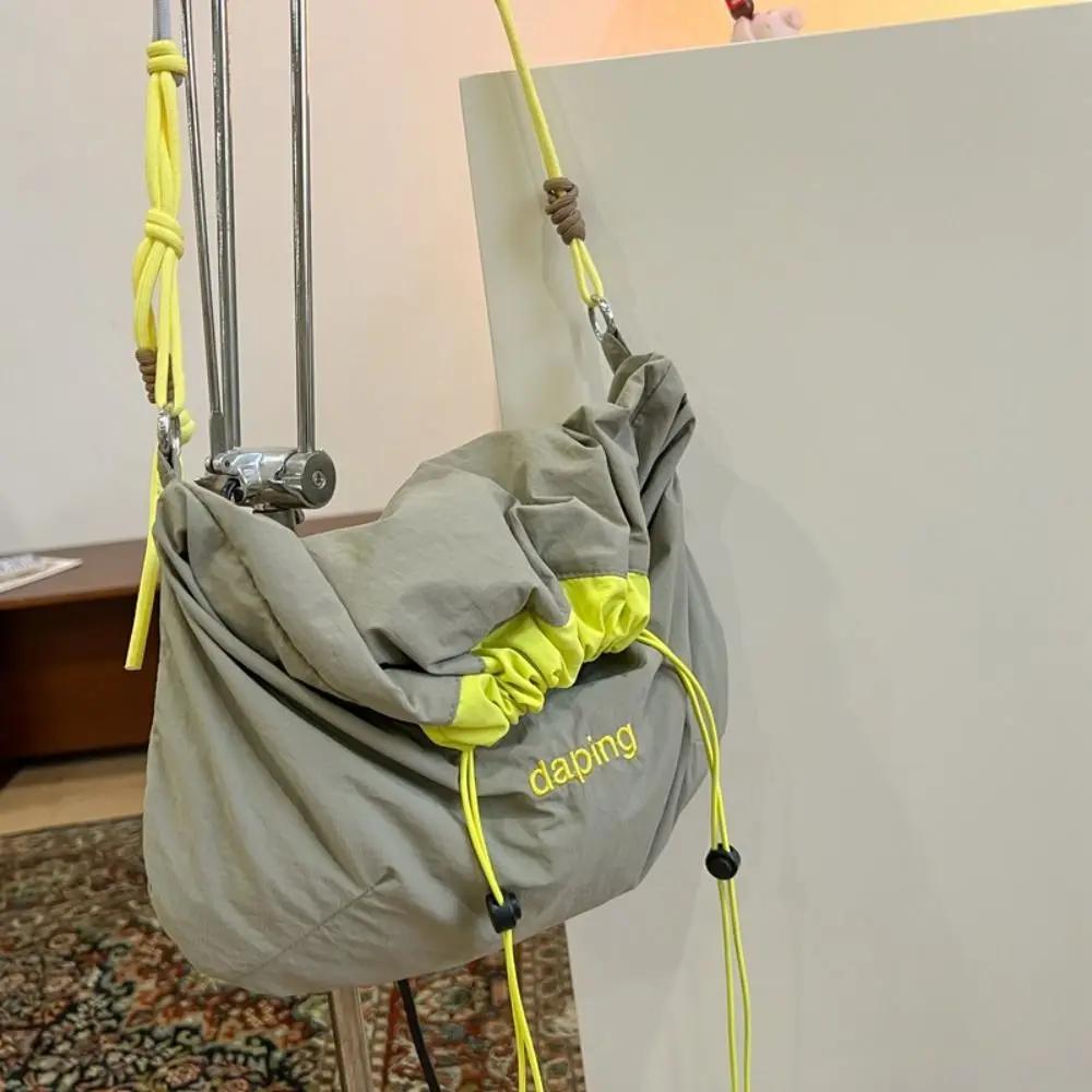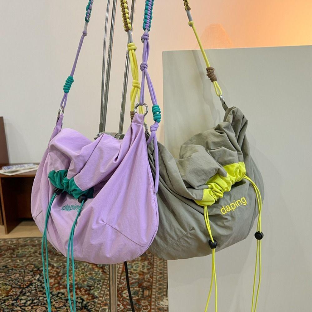 Повседневная легкая наплечная сумка с надписью, контрастного цвета, сумка через плечо, большая вместимость, нейлоновая сумка на шнурке, для девушек