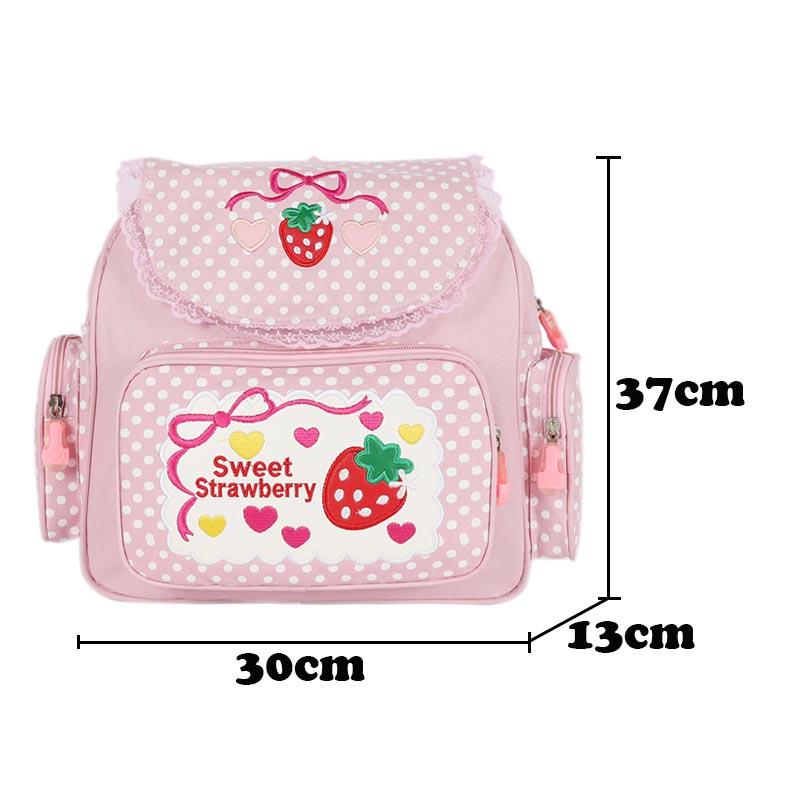 Розовый Девочка Вышивка Клубника Детский Школьный Рюкзак Студентки Девочки Подарок на День Рождения 2023 Новый Японский Мультяшный Розовый Рюкзак