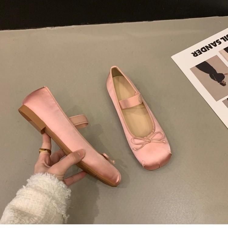 2025 Лето Новые Женские Розовые Балетки Эфирные Фееричные Винтажные Атласные Серебристые Туфли Мэри Джейн