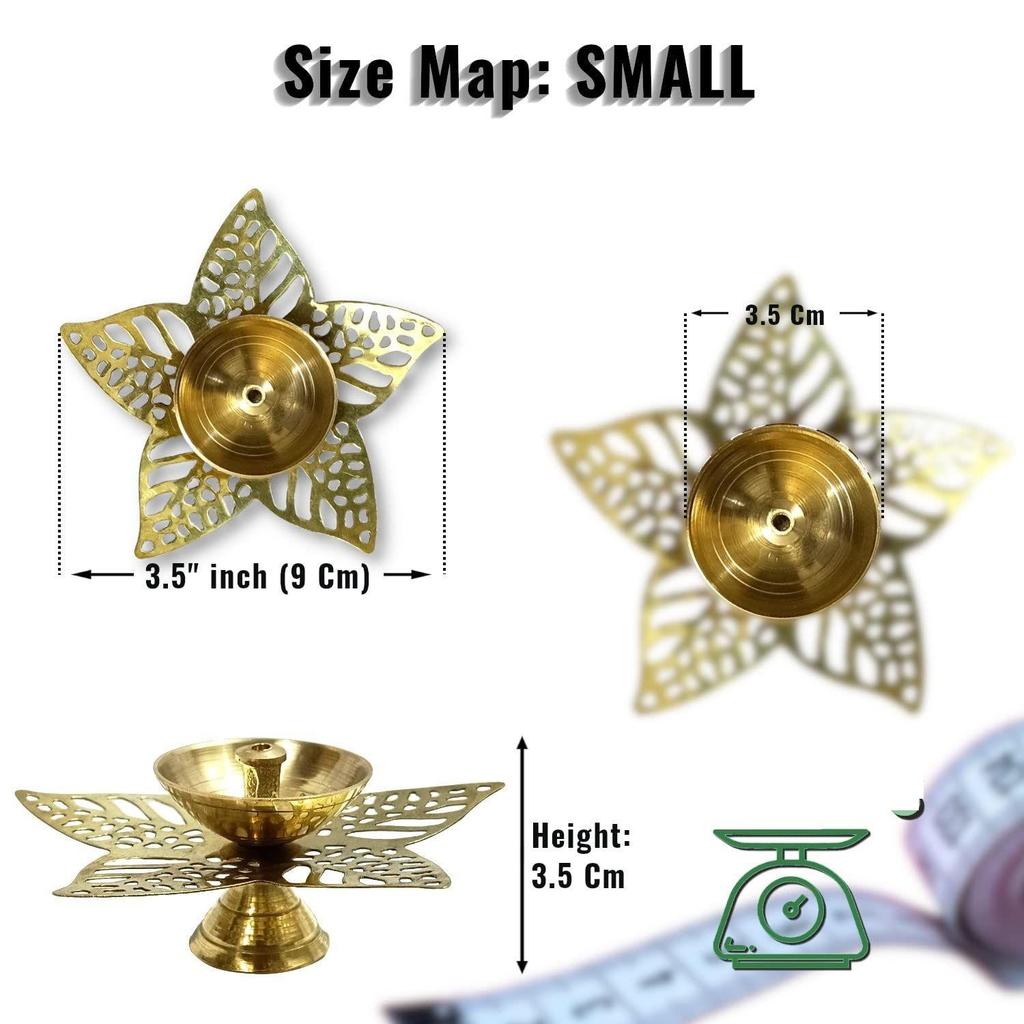 Декоративная латунная дия для пуджи (Набор из 1 маленького 3,5-дюймового золотого листа звезды) Центральный держатель для фитиля Pital Akhand Deep Vilakku для домашнего декора, ежедневного/праздничного богослужения, новоселья, свадьбы и ответного подарка