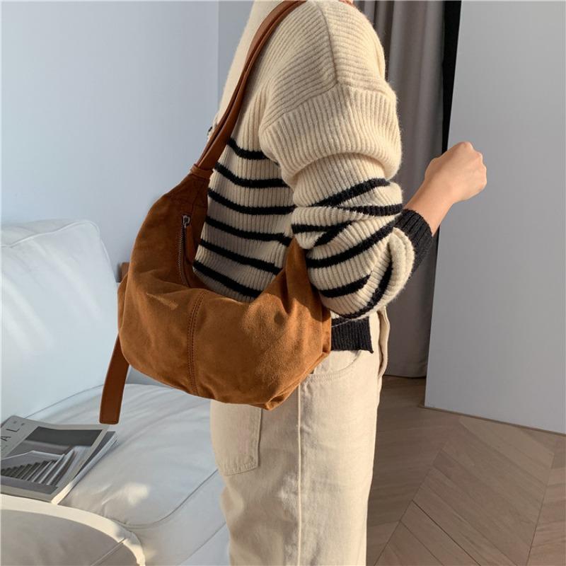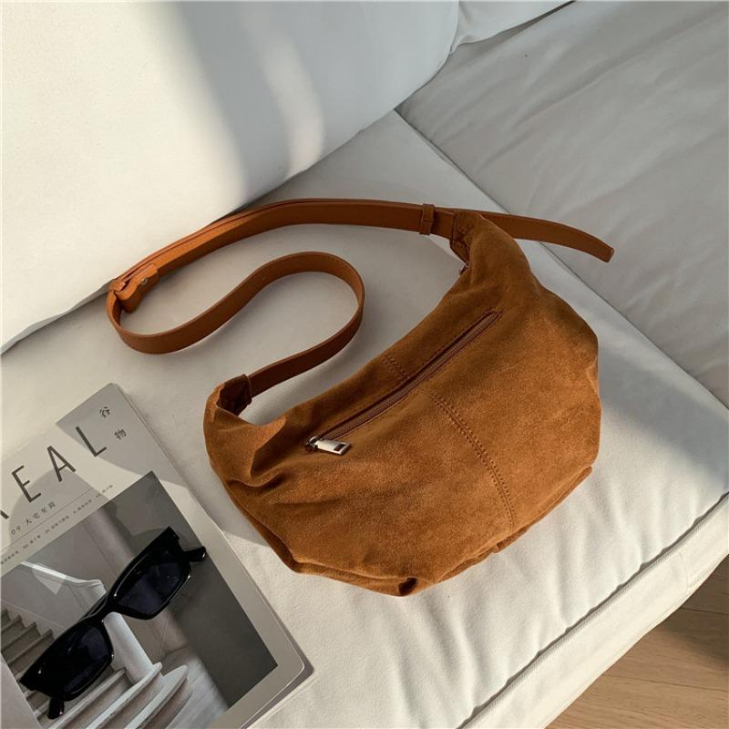 Замшевая сумка-пельмень с логотипом, повседневная универсальная наплечная сумка, женская универсальная большая вместимость, осенне-зимняя сумка-мессенджер, плюшевая