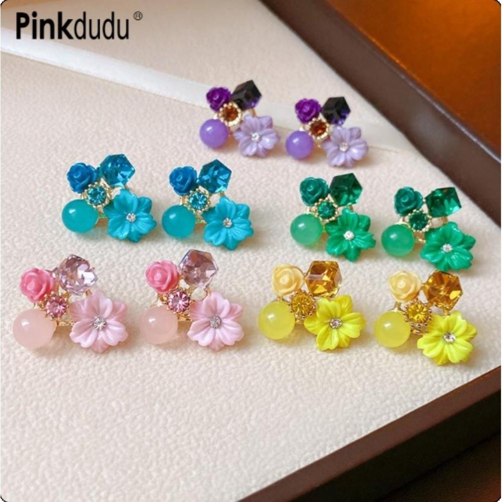 Pinkdudu Винтажные серьги-пусеты с фиолетовым цветком и цирконом, из цинкового сплава, модные, трендовые, серьги-подвески с розой, женские украшения, подарок PD2263