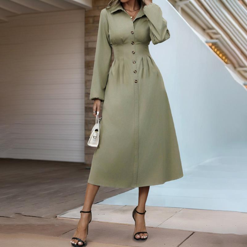 Новое осеннее платье-рубашка с лацканами, приталенное, А-силуэта, для делового стиля, с длинным рукавом, на пуговицах