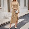 Женское новое однотонное вечернее платье высокого класса с круглым вырезом