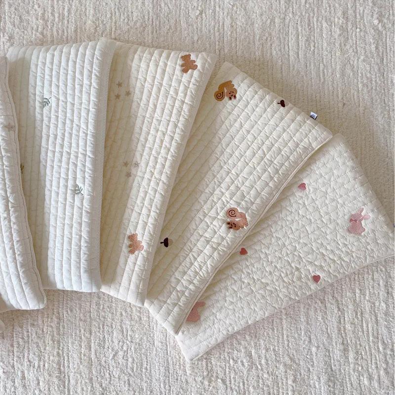 Подушка плоская из чистого хлопка для новорожденных, стеганая, с вышивкой мультяшных белки и медведя, дышащая и мягкая