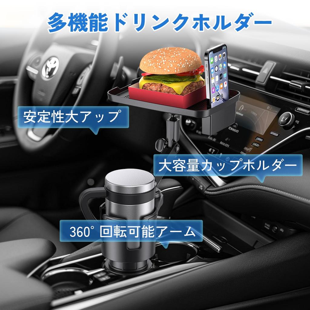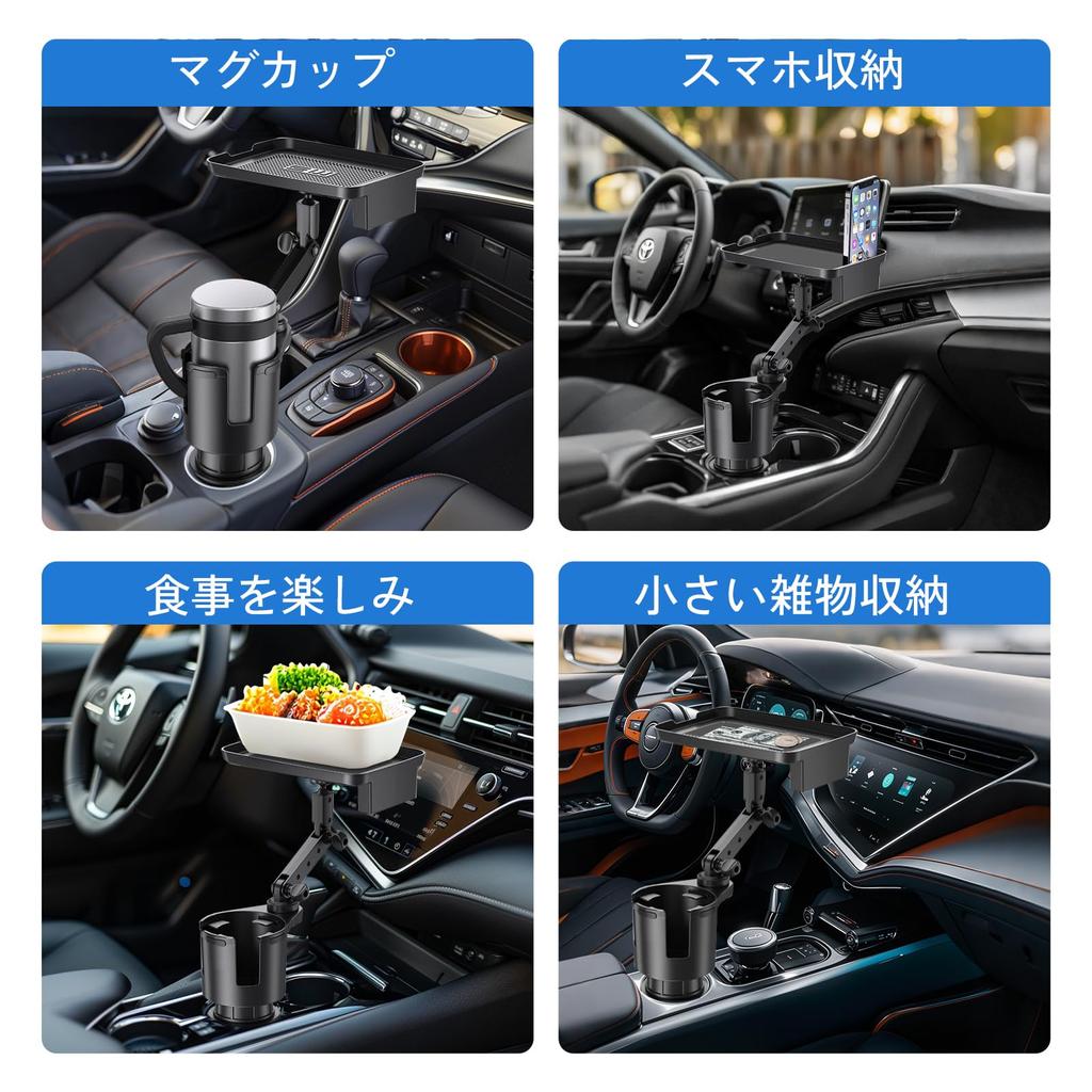 [С подносом] Этот продукт представляет собой автомобильный держатель для напитков с подносом, который имеет больше места для хранения, чем обычные продукты.. Он может вместить не только стаканы, но и еду, напитки, смартфоны и различные другие мелкие предметы, экономя место в машине.