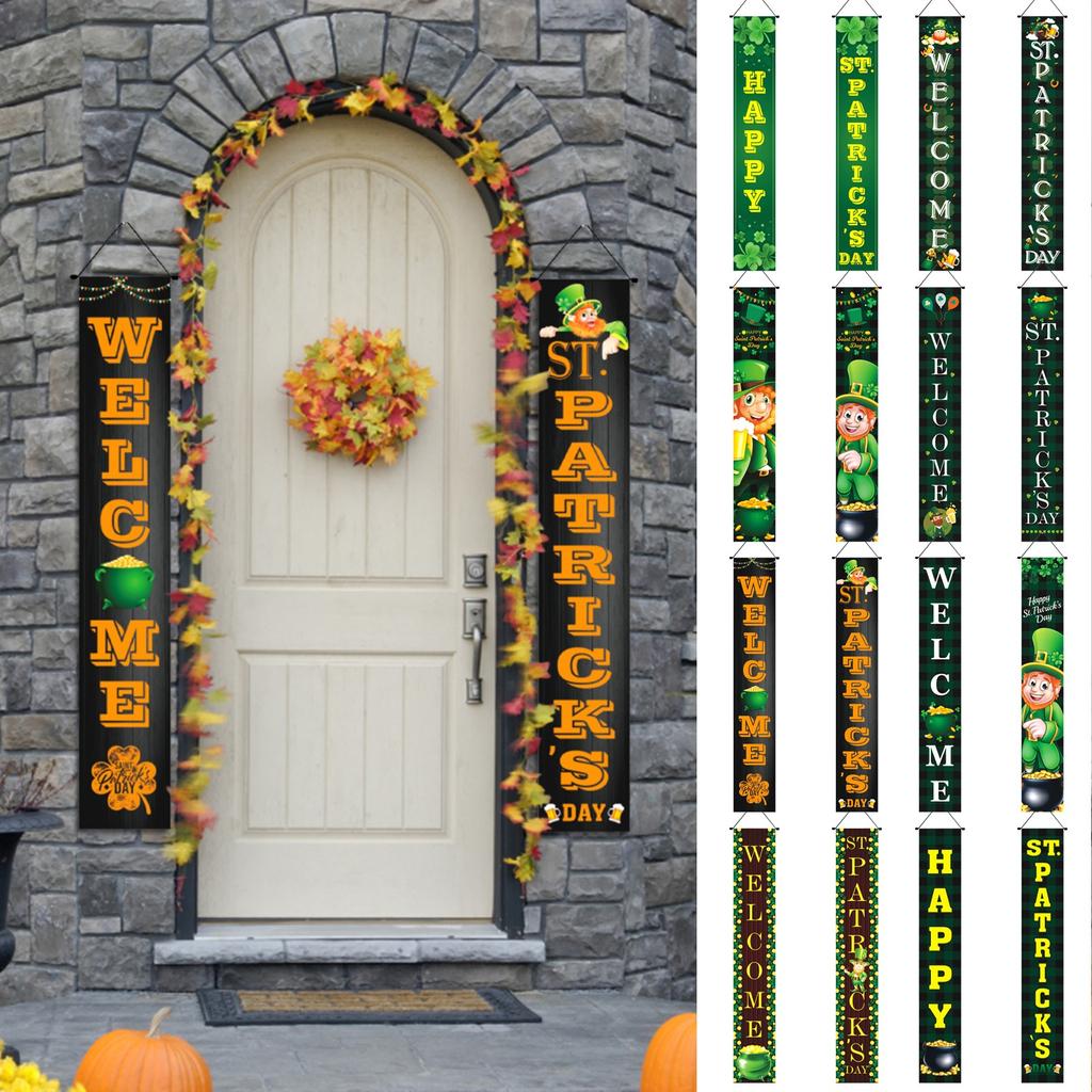 Улица. Украшение двери ирландского фестиваля ко Дню Святого Патрика. Ирландский куплет с флагом Святого Патрика