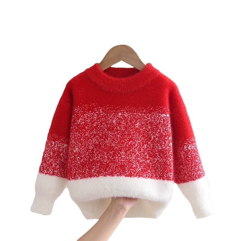 Детский свитер Утепленный Градиентный цвет Имитация норки Вязаный свитер на осень и зиму Одежда для девочек на зиму