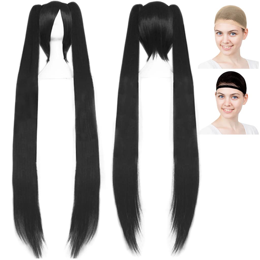 ✅【Парик, который изменит вас】Этот парик для косплея отличается красивыми длинными черными хвостиками и выразительным, изысканным дизайном. Его можно стричь и укладывать по вашему желанию, что делает его профессиональным париком, простым в использовании даже для начинающих косплееров.. Два хвоста длиной примерно 120 см и со съемным пучком. *Модель на фото подстригла челку.