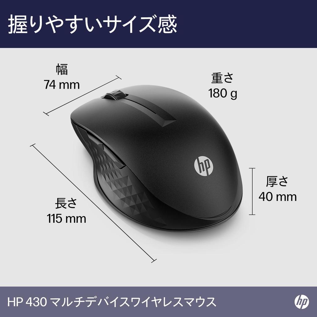 HP 430 Беспроводной USB-приемник Батарея Настраиваемые 5 кнопок Hewlett-Packard (HP) Мышь для нескольких устройств, 4000 dpi, Bluetooth, USB-адаптер, срок службы 24 месяца,