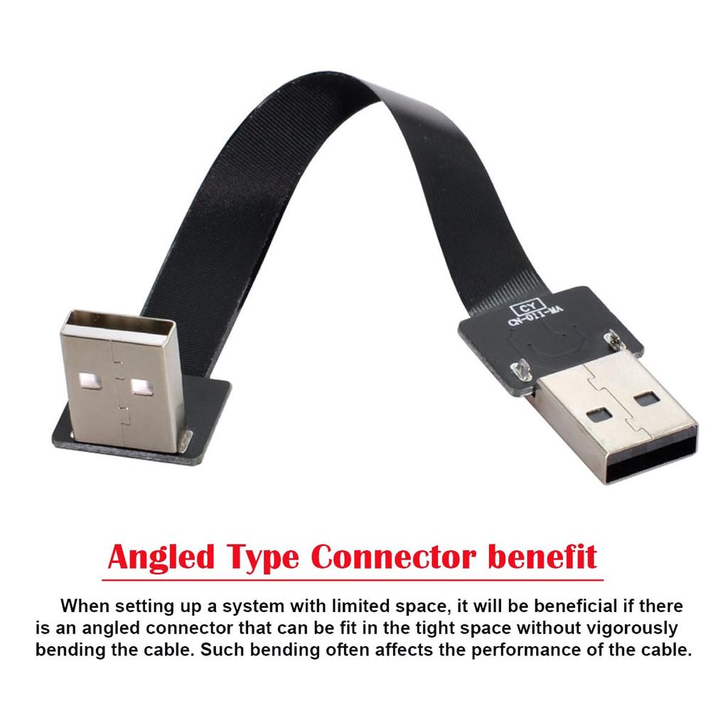 Cablecc Up Angled USB Male to Male Data Flat Slim FPC Cable 90 Degree for FPV Disk Scanner Printer 200CM 2.0 Type-A Type-A & & &