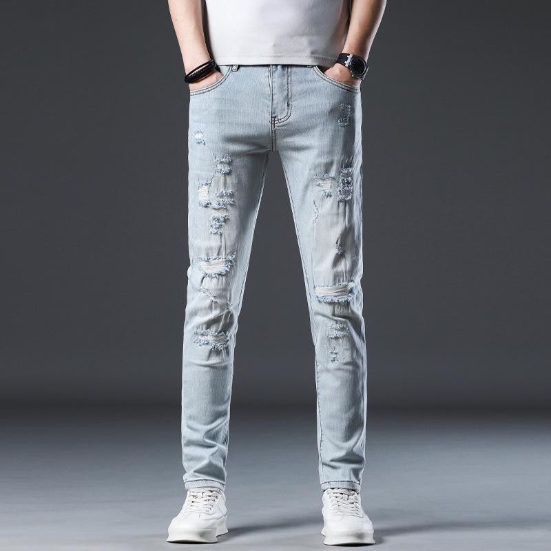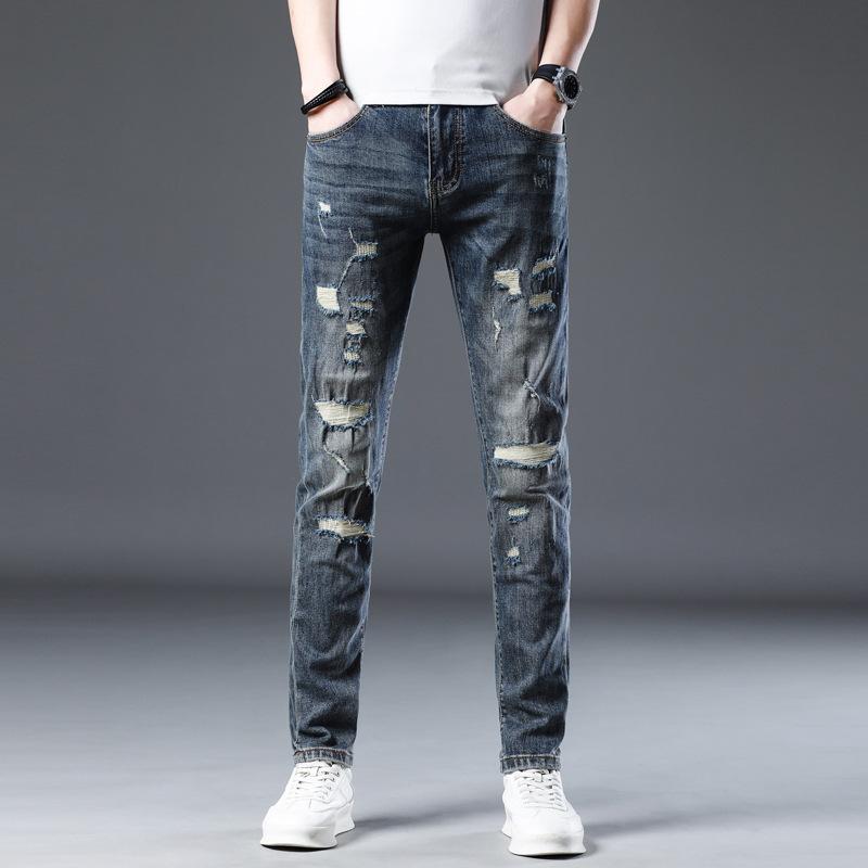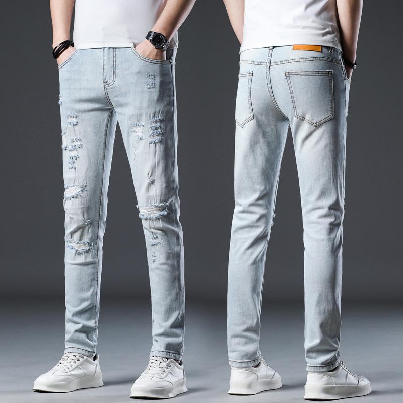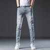 Новые летние джинсы слим девять точек стрейч повседневные длинные брюки для мужчин