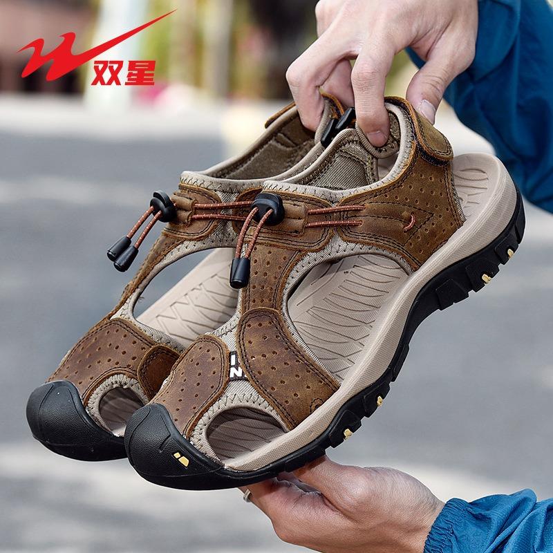 Sandals men's cowhide outer wear non-slip bag head hole men's sports wear-resistant outdoor beach shoes
