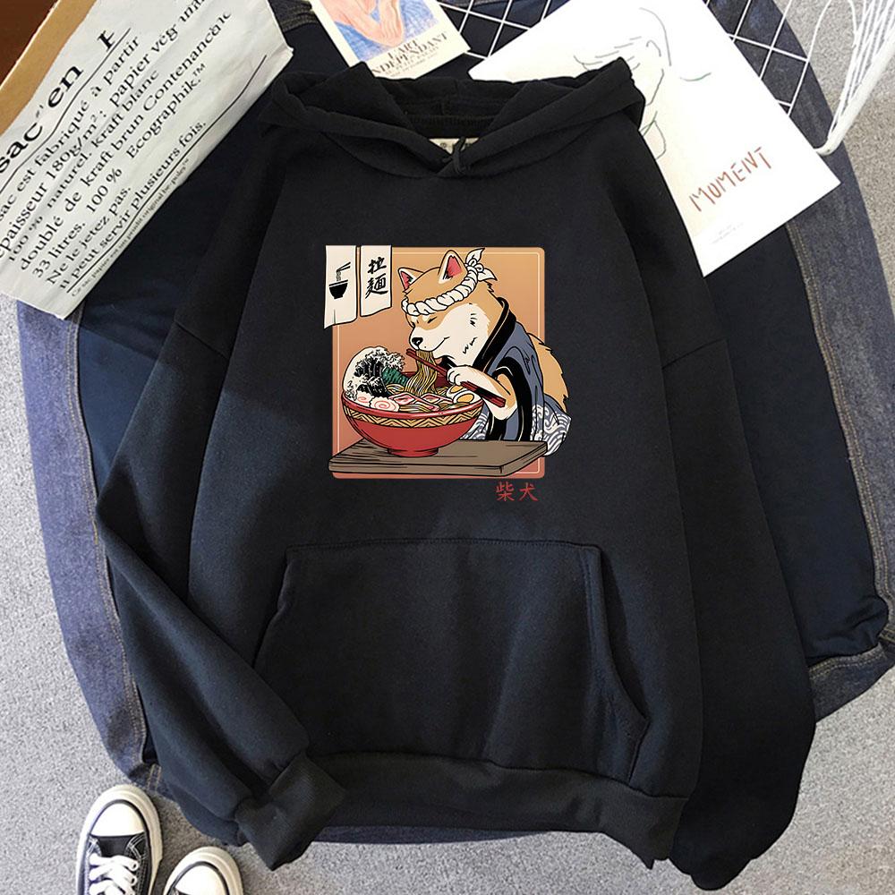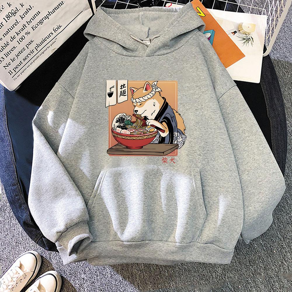 Худи Рамен Сиба Укиё-э Каваи Собака Толстовки Мультяшное Аниме Манга Повседневная Одежда Y2k Женское Худи с Длинным Рукавом