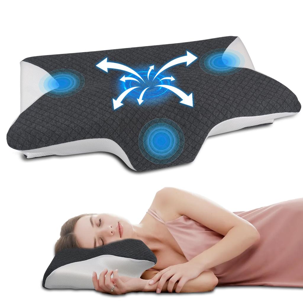 [Удобно для спящих на боку, с дизайном, позволяющим вставлять руки в подушку] Арочные стороны позволяют вашим рукам располагаться вдоль изгибов подушки во время сна на боку или на спине, обеспечивая естественную поддержку. Вам больше не придется беспокоиться о том, куда деть руки.. Подушка с эффектом памяти позволяет вам комфортно спать в любом положении: на боку, спине или животе.
