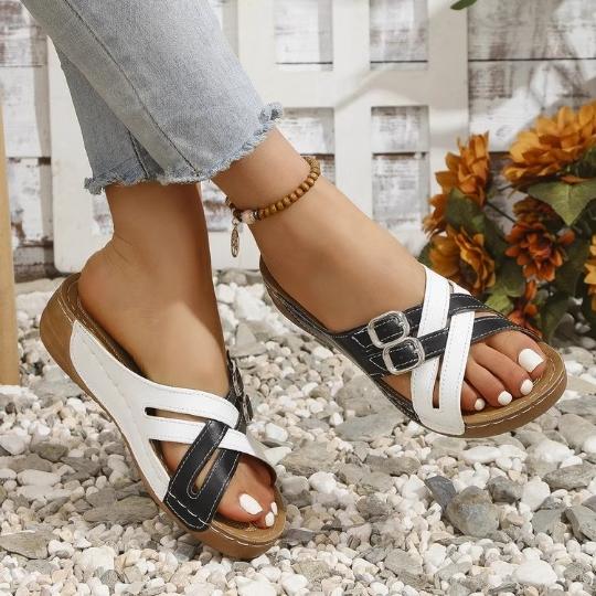 Женские повседневные тапочки большого размера 2025 года, новые однотонные тапочки с открытым носком и пряжкой в виде рыбьего рта, женские сандалии с пряжкой на ремне