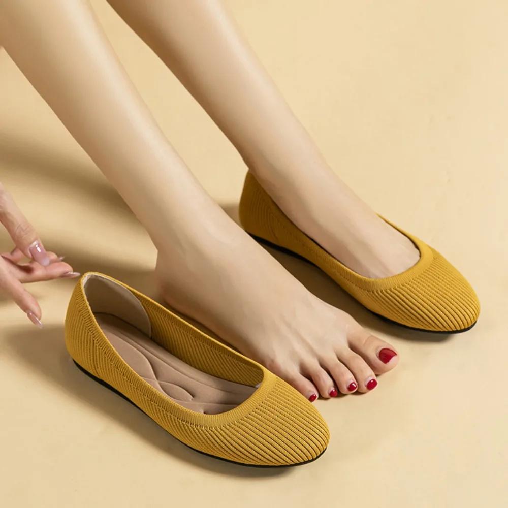 Туфли на плоской подошве женские туфли на плоской подошве с круглым носком из ткани с неглубоким горлом женские туфли модные вязаные туфли на мягкой подошве большие туфли-лодочки
