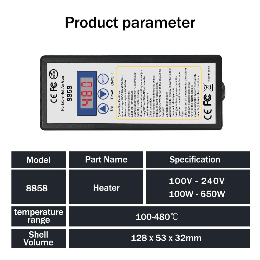 Паяльная станция горячего воздуха 8858 Micro Rework LED Цифровая Сушилка для волос для пайки 650 Вт Термофен Инструменты для сварки и ремонта Термофен