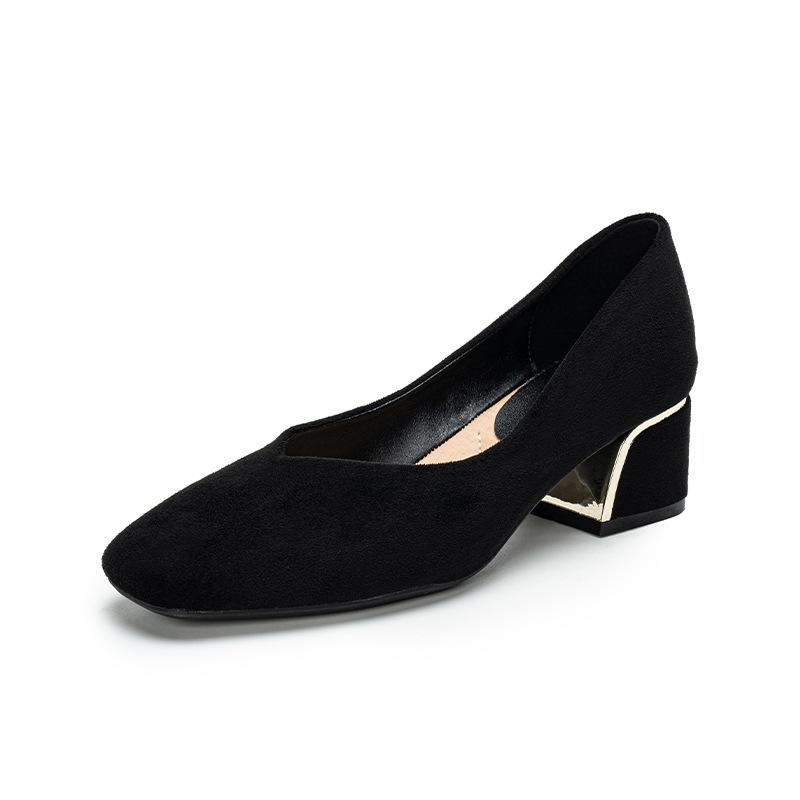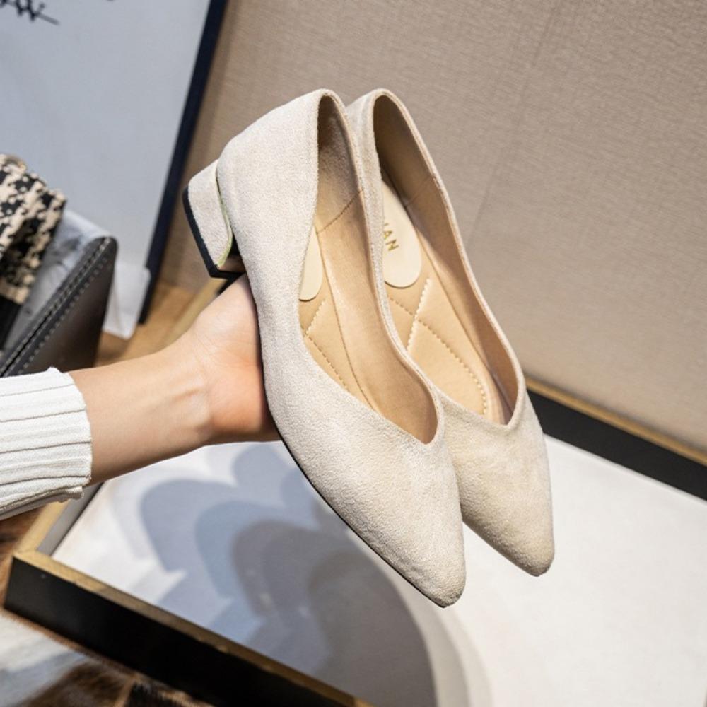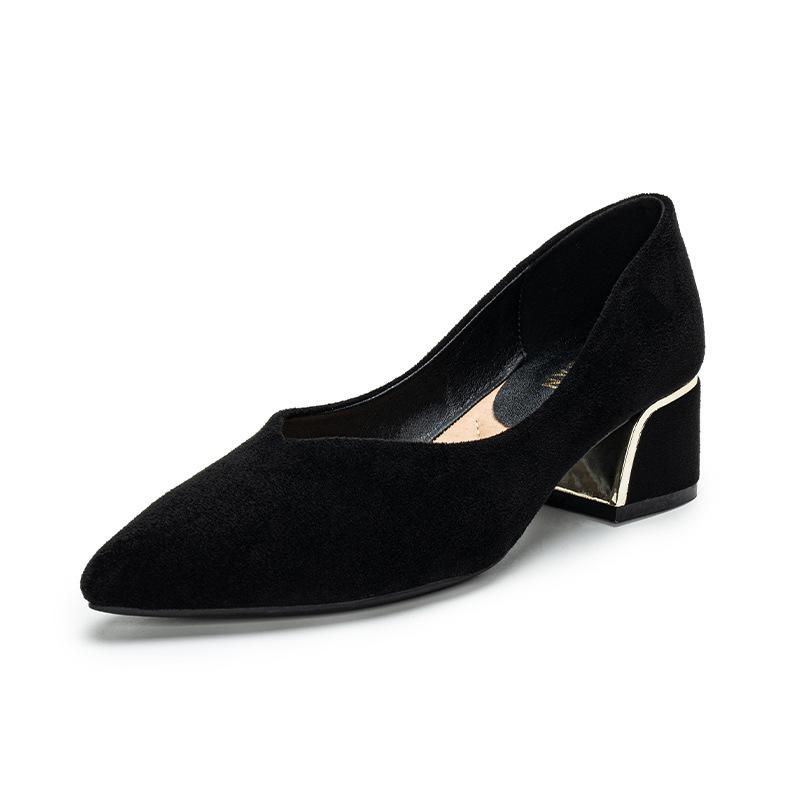 Женские туфли на каблуке, остроносые, простые, на толстом каблуке, универсальные, на низком каблуке, черные, рабочие туфли, модные, больших размеров, женские туфли