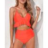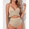 Купальник бикини с высокой талией, однотонный, раздельный дизайн, отделка краем в виде листьев, китайский бренд, модный женский купальник — купить товар онлайн с бесплатной доставкой по всему миру!