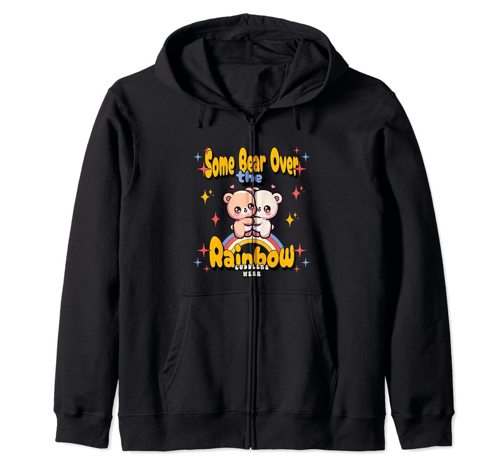 Забавная толстовка с капюшоном на молнии «Мишка над радугой»