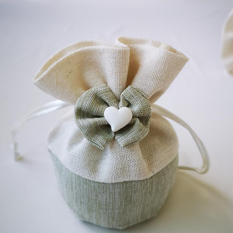 10Pcs Cotton Drawstring Gift Bag Cute Drawstring Round Bottom Candy Bag Butterfly Knot Heart-shaped Handmade Canvas Candy Bag