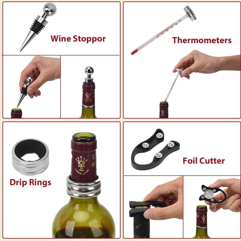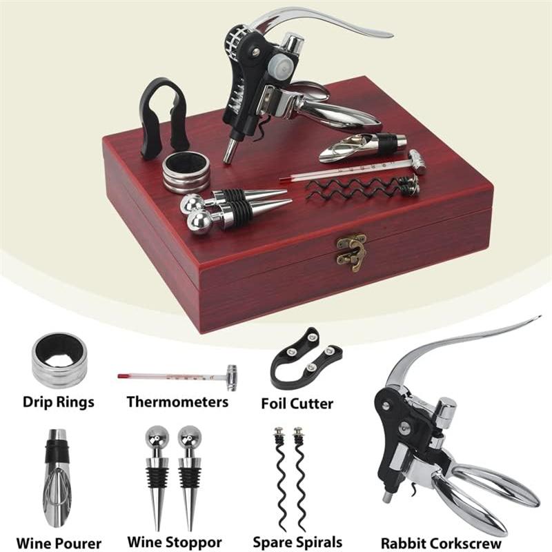 Набор для открывания вина, набор для открывания бутылок вина «Кролик» со штопором в деревянном футляре, 9 предметов, включая штопор для вина «Кролик», винную пробку