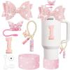 Набор из 8 предметов аксессуаров для стакана Stanley 30 унций 40 унций: топпер для соломинки, крышка-заглушка, чехол-ботинок, заглушка от проливания, подвеска-шарм, наклейка с инициалами