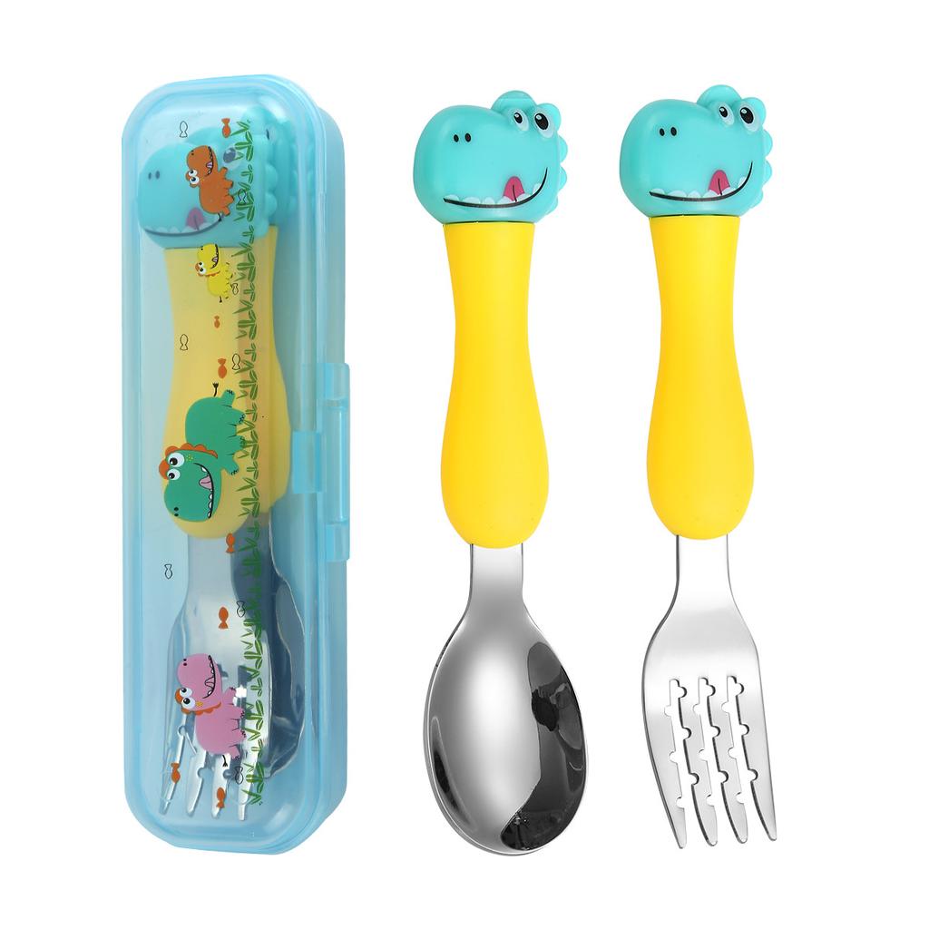 304 нержавеющая сталь динозавр детская портативная посуда мультяшная ложка вилка обучающие палочки для еды вилка набор ложек