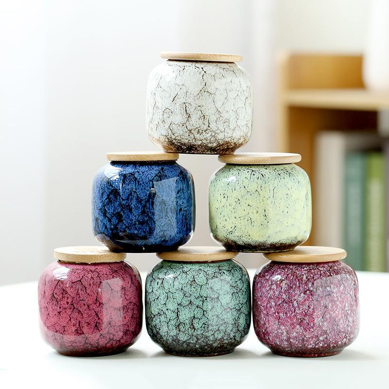 Керамические банки с герметичной крышкой, обожженные в печи, для дома и кухни, для упаковки чая, для хранения продуктов, с бамбуковой крышкой