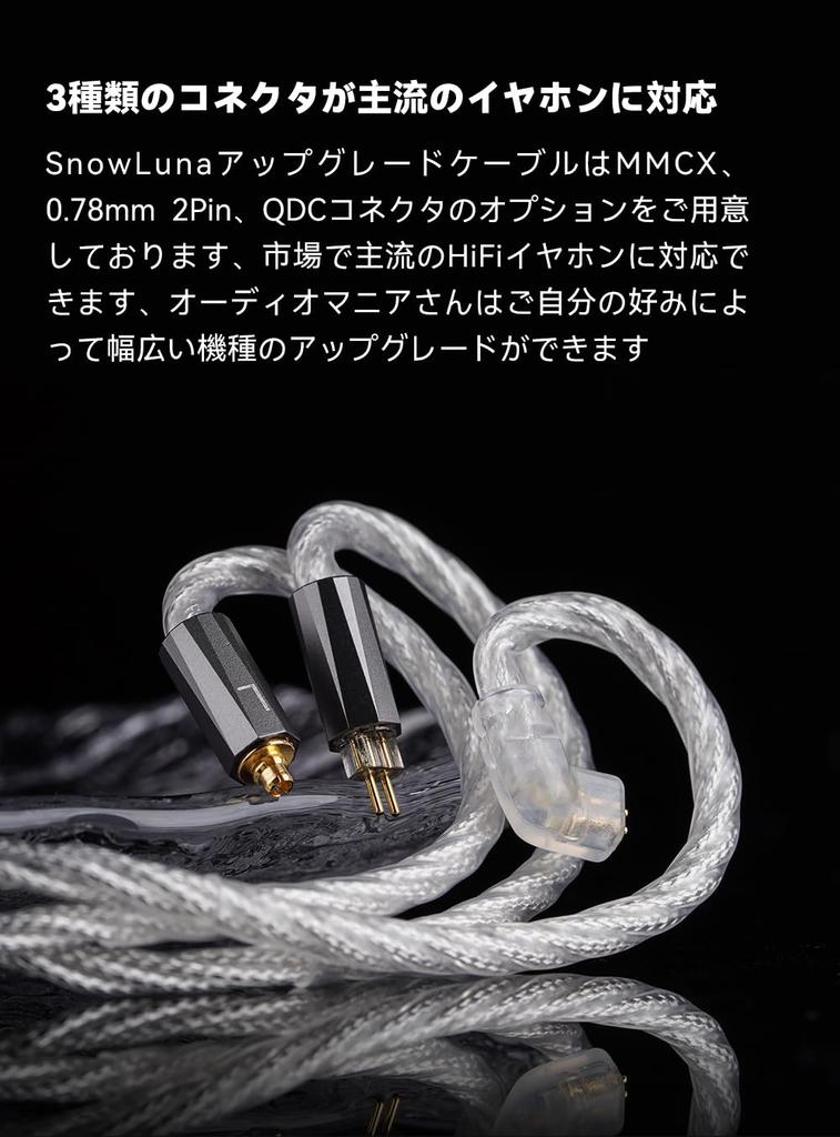 [Доступны разъемы 4,4 мм, MMCX, 2-контактные 0,78 мм, QDC] Модернизированные кабели SnowLuna доступны с вариантами разъемов 4,4 мм балансный, MMCX, 2-контактный 0,78 мм и QDC. Совместимые с основными плеерами и Hi-Fi наушниками на рынке, легкий и мягкий материал делает их удобными для ношения в течение длительных периодов времени.
