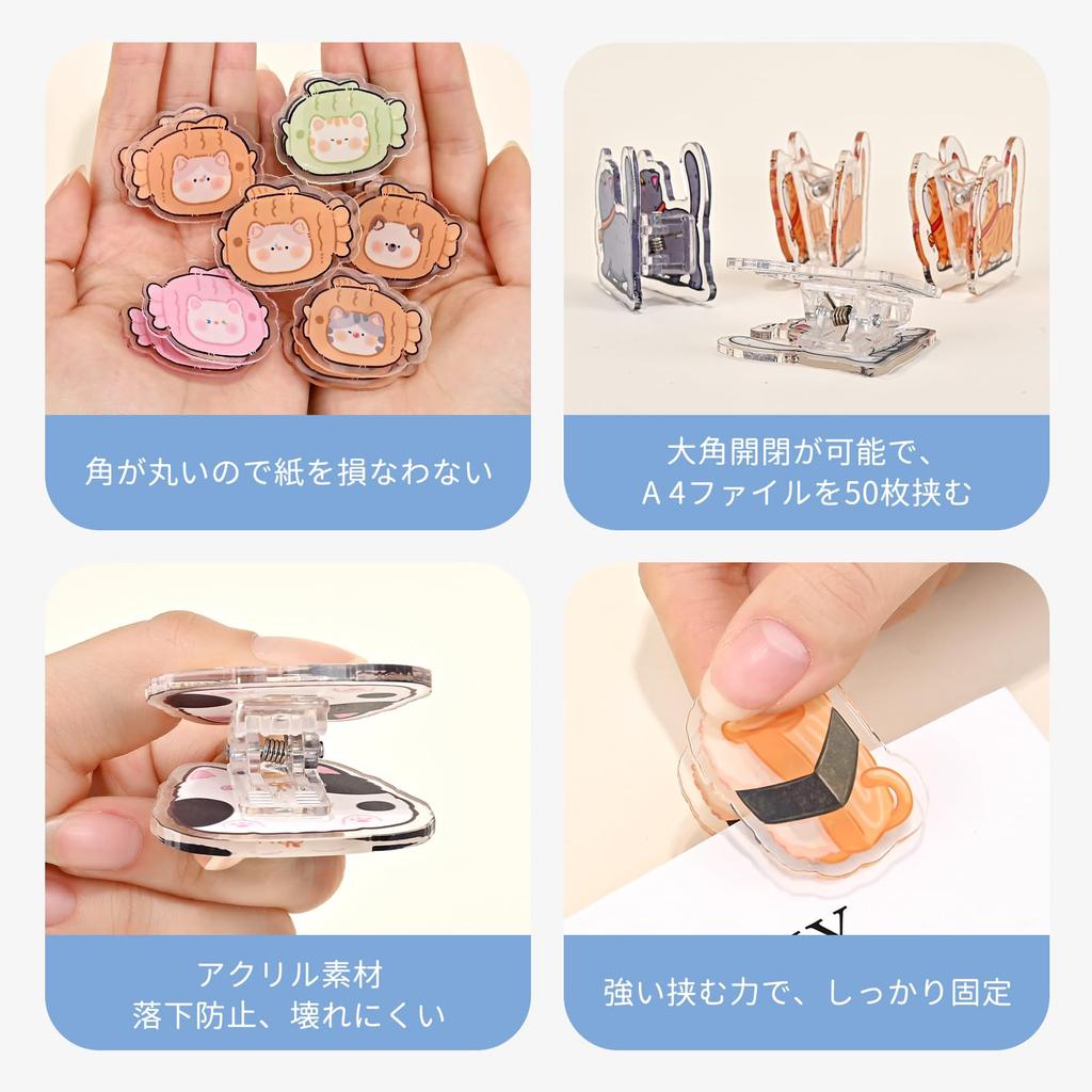 [Содержимое набора] Набор из 6 цветных зажимов. Размер: 52 x 38 мм, 0,05 кг/кг. Легкий, компактный, удобный для переноски и многоразовый. Милый кошачий узор успокоит вас после работы или учебы.. уведомление: На поверхности есть прозрачная защитная пленка; пожалуйста, снимите это перед использованием.